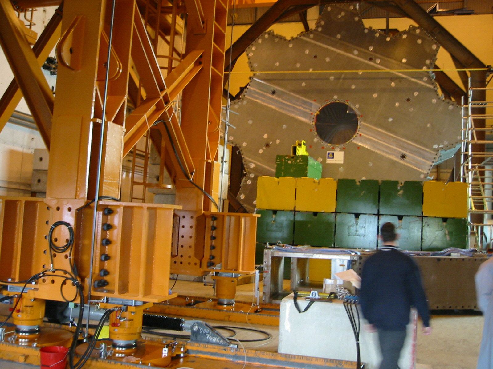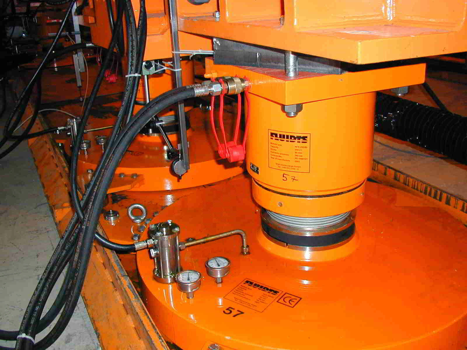 Loads of up to 5,000 t have to be moved when experimental setups at the CERN nuclear research center are transferred to the particle accelerator. Using the pneumatic air pad lifters of the firm Noell Konecranes. Hydraulic lifting cylinders which are fitted with special securing systems and which may have to withstand high side forces ensure that the load is spread evenly over the supporting structure, while at the same time compensating for differences in height.